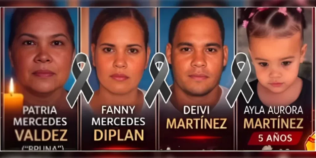 Las víctimas fueron identificadas como Patria Mercedes Valdez, de 55 años, conocida entre familiares y amigos como “Bruna”; la doctora Fanny Mercedes Diplán, de 33 años; Deibys Martínez Hernández; y la niña Ayla Aurora Martínez, de 5 años de edad.