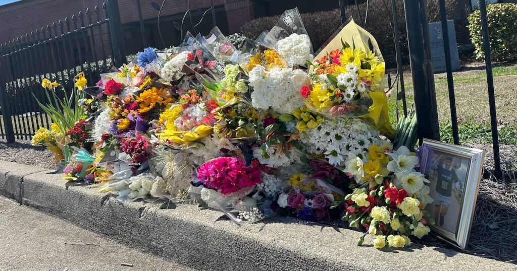 Students, former athletes, and residents have gathered at North Hall High School to leave flowers and messages honoring his life.