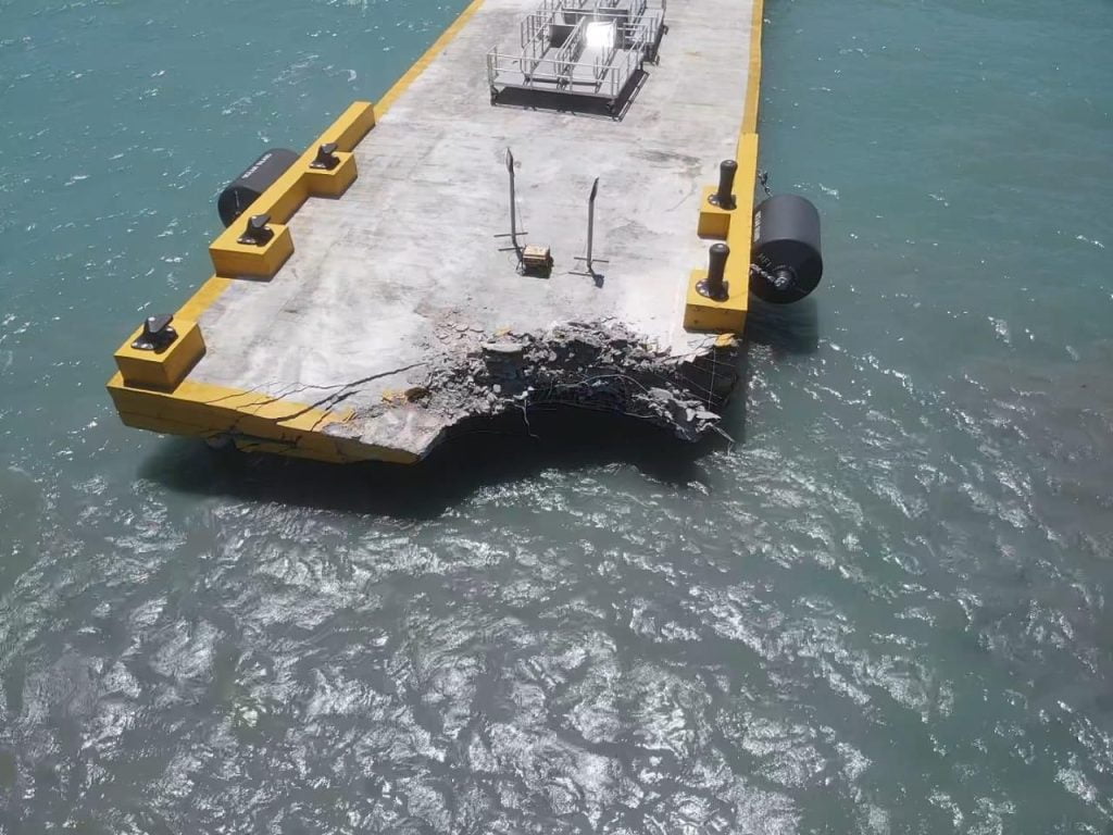 A través de un comunicado publicado en sus redes sociales, Taino Bay informó que el incidente ocurrió alrededor del mediodía y que la zona afectada por la embarcación Dynamic Striker fue la parte occidental de la estructura.