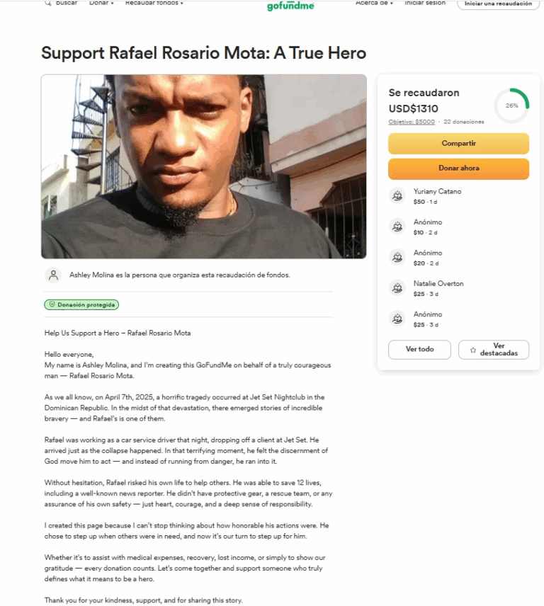 A pesar de las acusaciones que pesan sobre Rafael Rosario Mota, conocido como “Foster”, por difundir información falsa tras el colapso en la discoteca Jet Set, una campaña en la plataforma GoFundMe ha recaudado más de US$1,300 en su nombre.