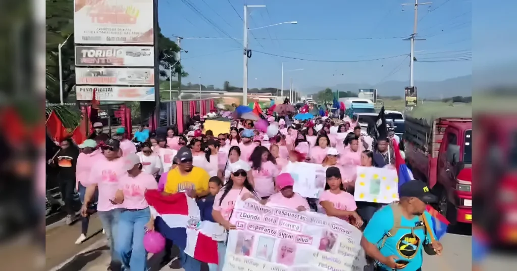 Santiago- Familiares y vecinos de la niña Briana Genao realizaron este domingo una marcha pacífica en Barrero, municipio de Navarrete, tras 18 días de su ausencia.